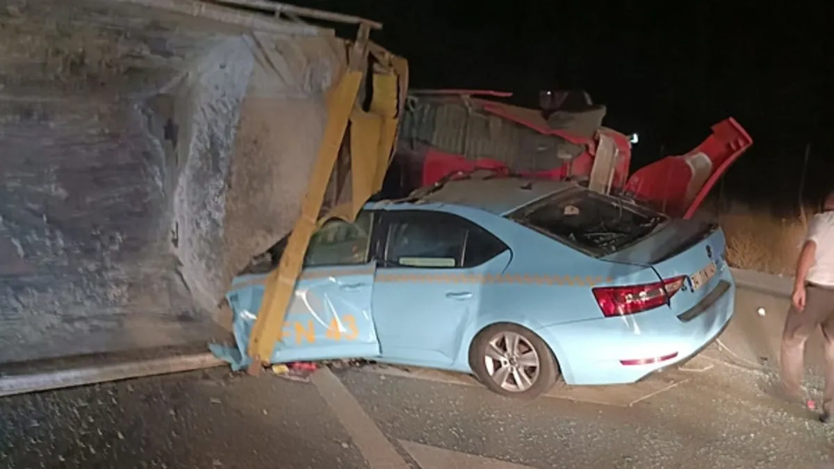 Eyüpsultan’da feci kaza! Hafriyat kamyonu taksinin üzerine devrildi: Taksici hayatını kaybetti